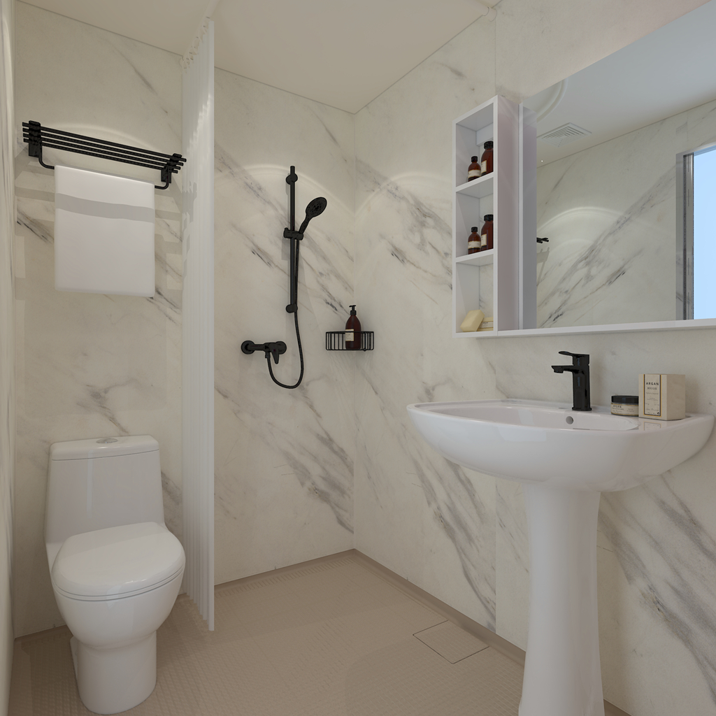 3、鋼板材質(zhì)整體衛(wèi)生間使用鋼板加石膏板的復(fù)合結(jié)構(gòu),結(jié)構(gòu)更穩(wěn)固, 耐用及保溫。